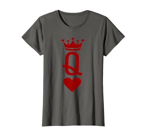 Queen of Hearts Card Game Lover Dice Game Lover Card Symbols T-Shirt, Women, Asphalt Grey, Medium