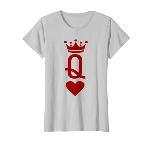 Queen of Hearts Card Game Lover Dice Game Lover Card Symbols T-Shirt, Women, Silver Grey, X-Small
