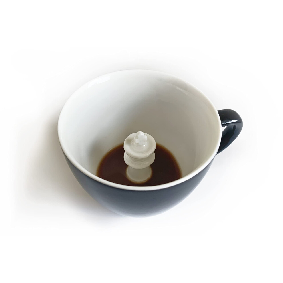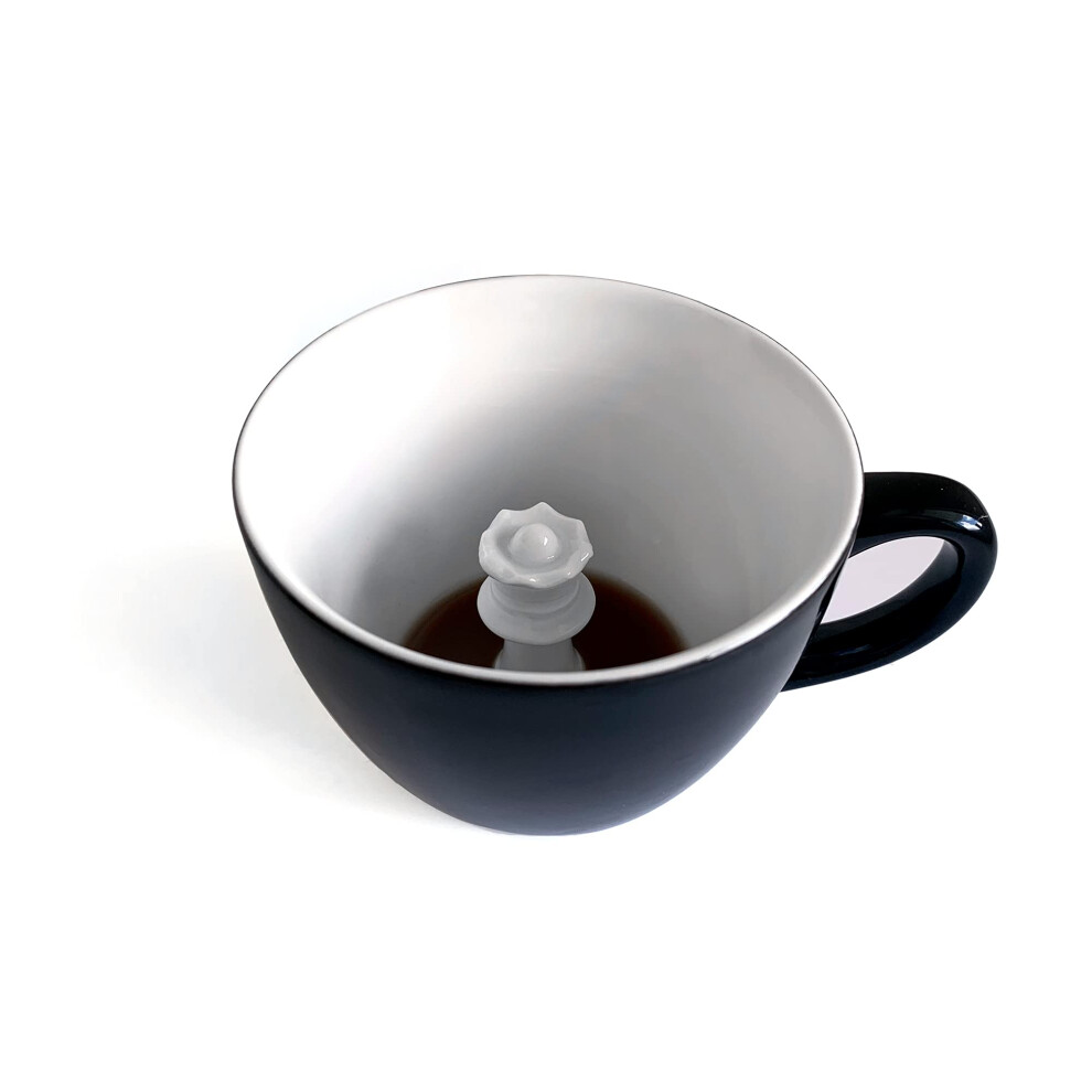creature cups Chess King Ceramic Cup (11 Ounce Black) - Hidden Statue Inside Mug - Queen's Gambit - Holiday Birthday Housewarming Gift for Chess