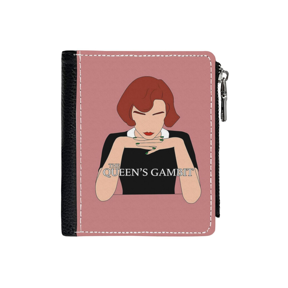 (The Queen's Gambit_186) PU Wallet Compact Bifold with Zipper & Multiple Card Coins Slots Black Stylish Durable Graphic Design Print for Men Women Kid