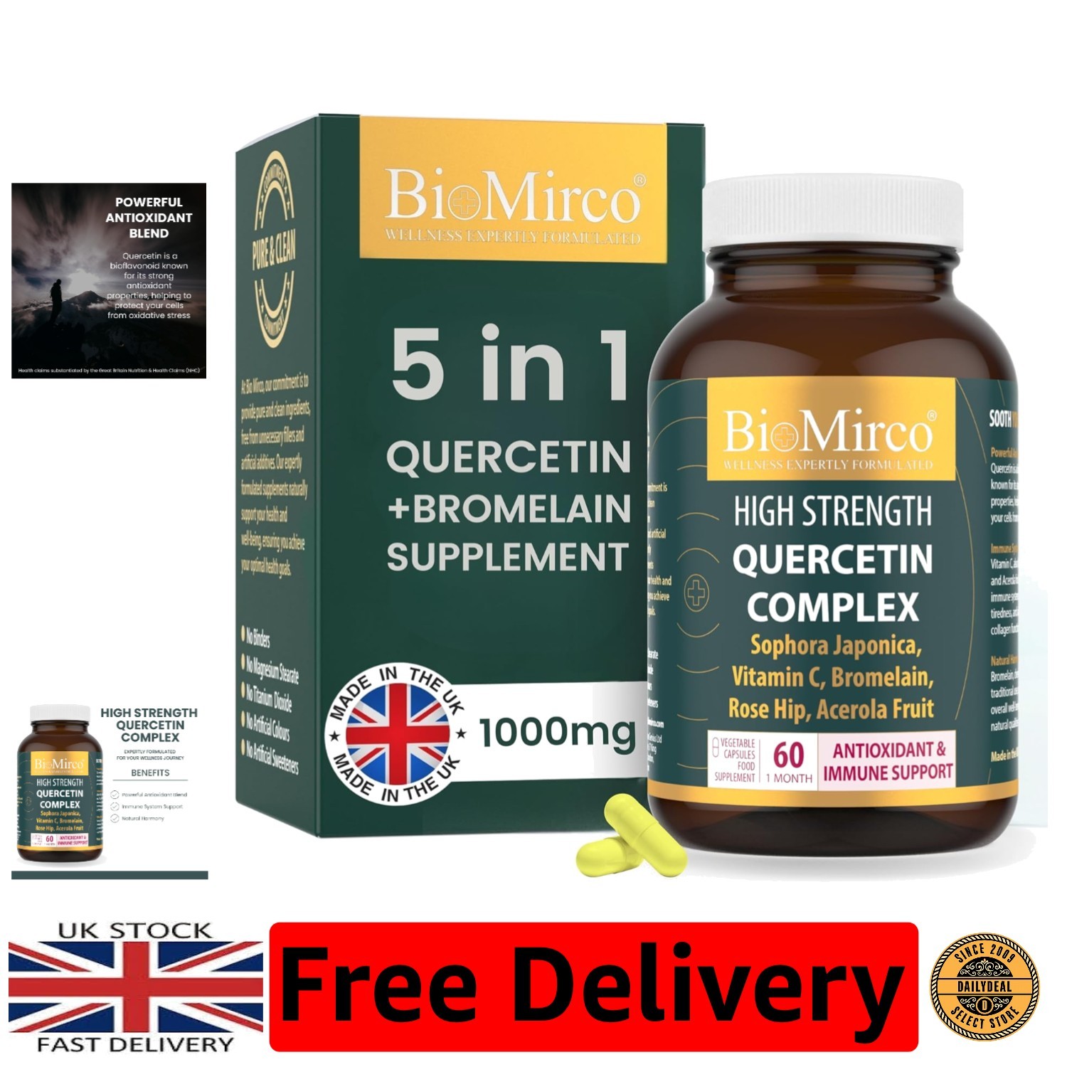 UK Made Quercetin 1000mg Complex - Allergy & Immune Support Capsules - 60 Count