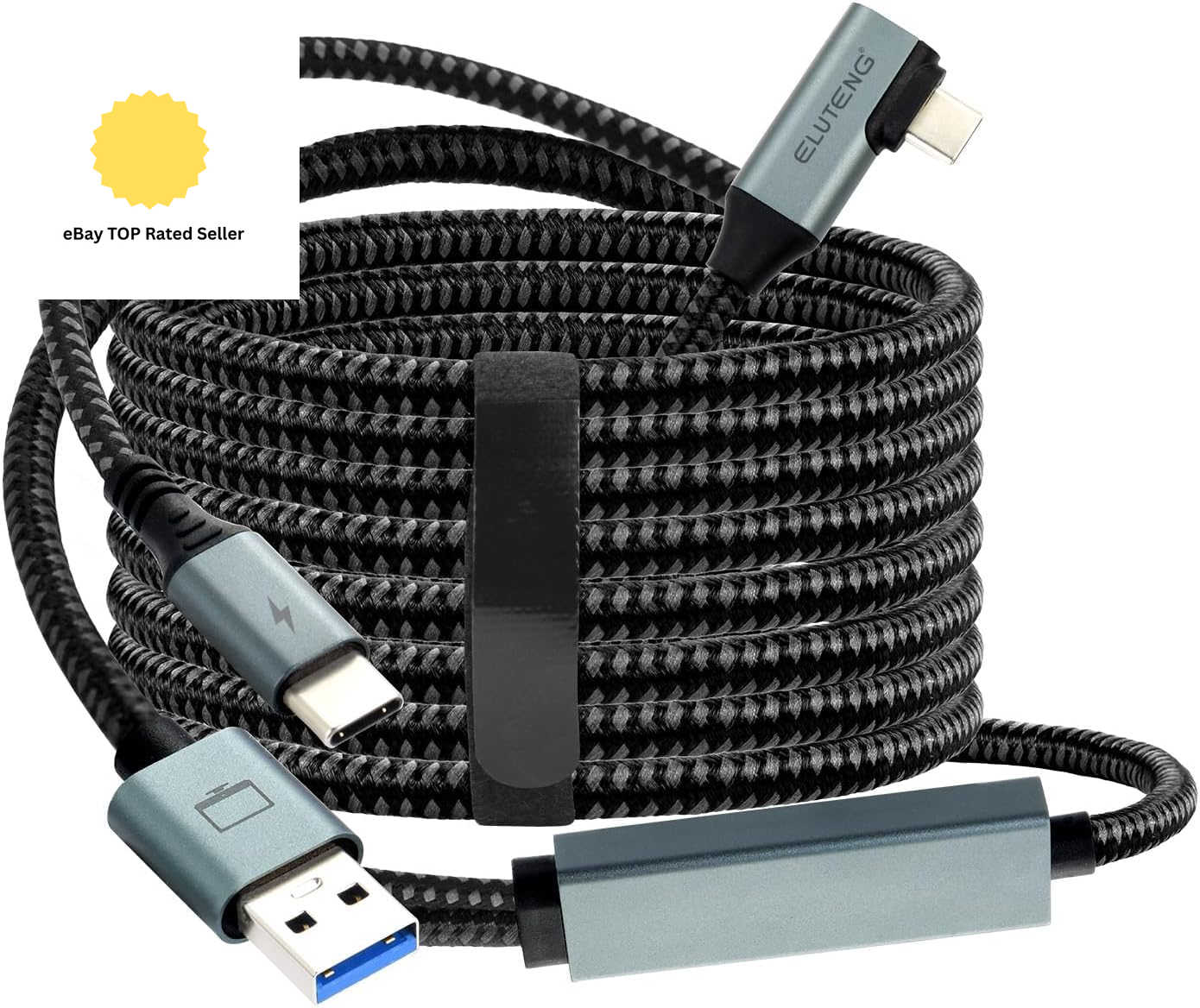 20FT Link Cable Compatible with Oculus/Meta Quest 3/3S/2/Pro, Pico 4/Ultra, PC/SteamVR â USB 3.0 to USB, High-Speed Data Transfer, Black