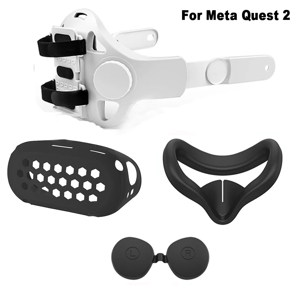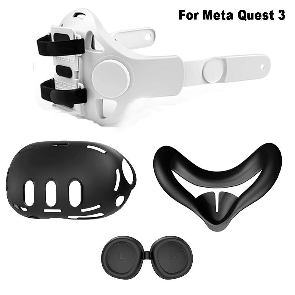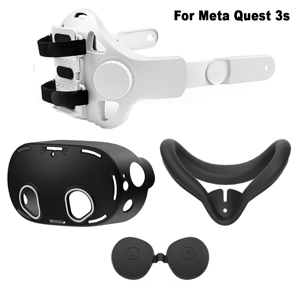 Adjustable Head Strap Replacement with Silicone Cover Kit Quest 3 S 3S/2, VR Ac