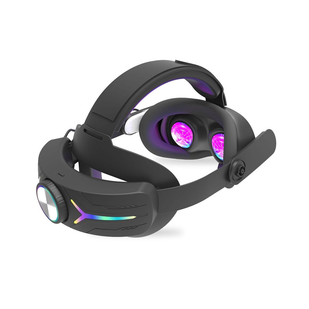 Adjustable RGB Head Strap For Quest 3S Elite Strap Replacement With 12000mAh Battery Black Enhanced Support