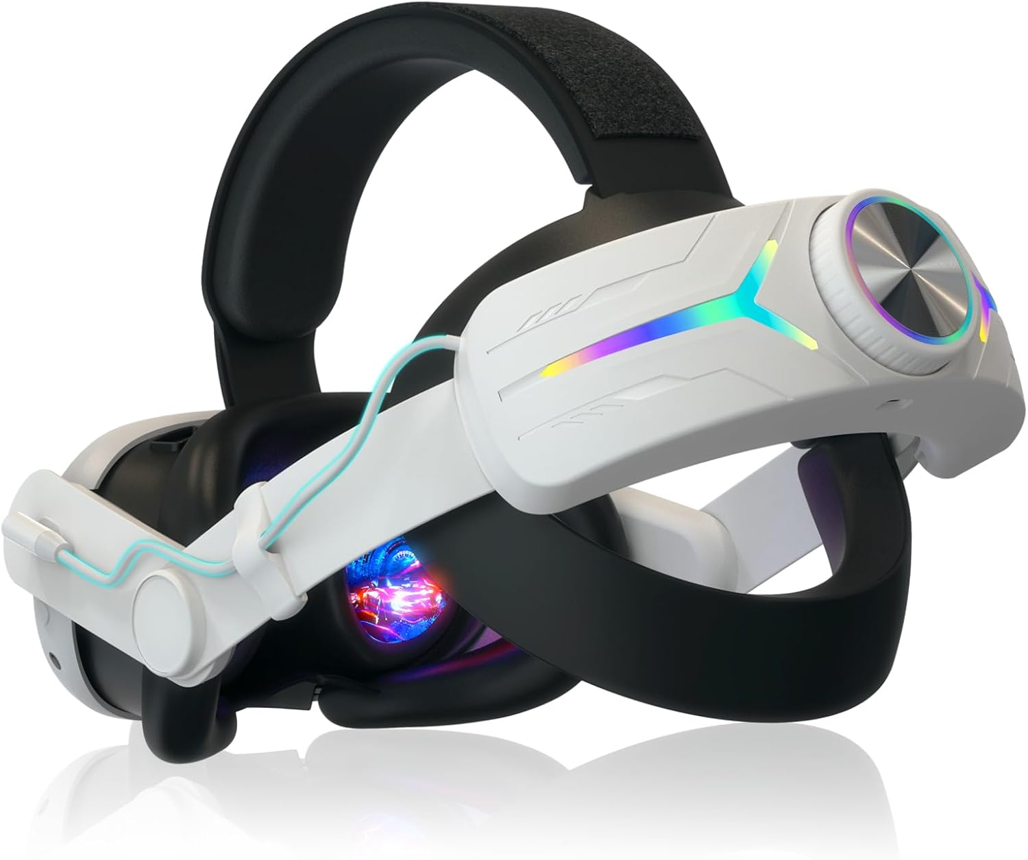 RGB Head Strap Adjustable 8000mAh Battery Pack For Meta Quest 2 Elite Strap White