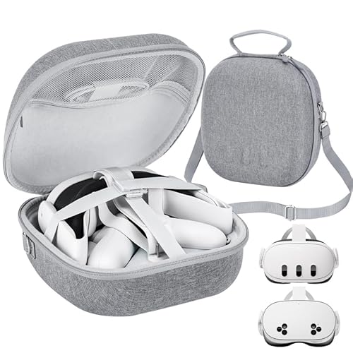 Large Carrying Case for Meta Quest 3S/Quest 3, Hard Travel Case for BOBOVR S3 Pro/Kiwi Design Battery Head Strap, Controllers and Other Accessories, Carry Case for Oculus Quest 3S/3, Gray