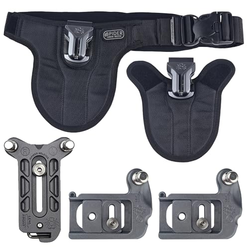 SPIDER HOLSTER – SpiderPro Mirrorless Dual Camera System v2 for Carrying TWO Professional Cameras and Heavy Gear Featuring Belt with Built-In Self-Locking Camera Holsters for Quick-Draw Camera Access