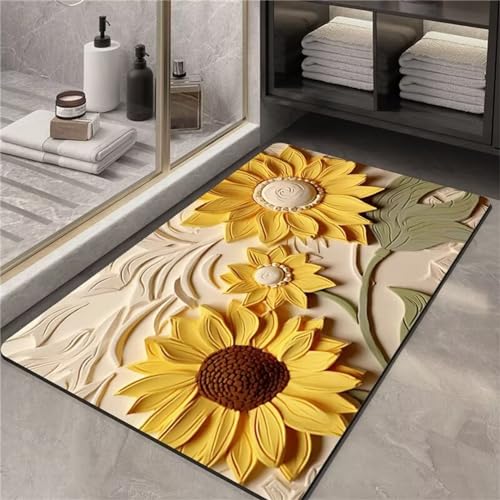 Chickwin Absorbent Bath Mats, Sunflower Oil Painting Style Diatomite Bathroom Mat Quick Dry Bath Mat Non Slip Anti Slip Bathroom Floor Mat Bathroom Rug Shower Floor Mat (40x60cm,Style 2)