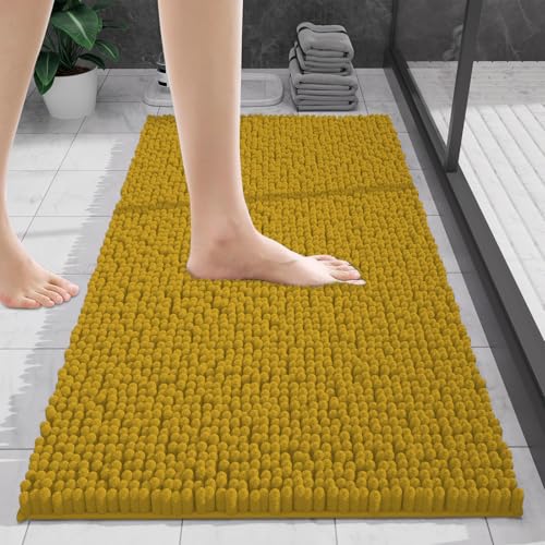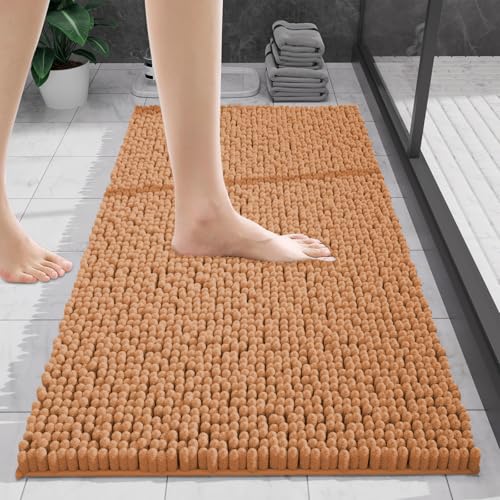 wyewye Chenille Bathroom Mat, Extra Soft Bathroom mat Non-slip,Super Absorbent Fluffy and Shaggy Bath Mats for Bath mat,Machine-Washable Quick Dry Bath Rug Foot Mat,Ginger