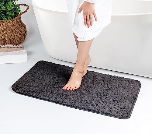 smiry Non Slip Chenille Bath Mat, Extra Soft Bathroom Mat, Super Absorbent Fluffy Bath Mats for Bathroom, Machine-Washable Quick Dry Bath Rug Foot Mat, 40 x 60 cm, Dark Grey