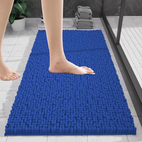 wyewye Chenille Bathroom Mat, Extra Soft Bathroom mat Non-slip,Super Absorbent Fluffy and Shaggy Bath Mats, Machine-Washable Quick Dry Bath Rug Foot Mat, Royal Blue