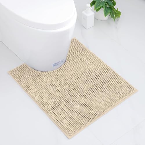 smiry Super Soft Toilet Mat, Extra Absorbent Chenille Mat for Toilet, Non Slip Fluffy Pedestal Mat, Machine-Washable Quick Dry Bath Rug Foot Mat, 50 x 60 cm, Beige