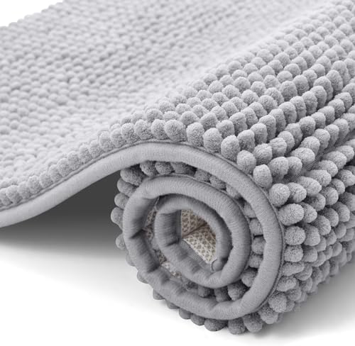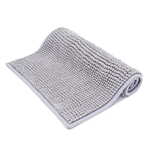 ROSMARUS 43 × 61 cm Bobble Chenille Quick Dry Bath Mat, Non-slip Bathroom Mats Machine-washable, Shower Water Absorbent Thick Bath Rug for Bathroom, Tub,Light Grey