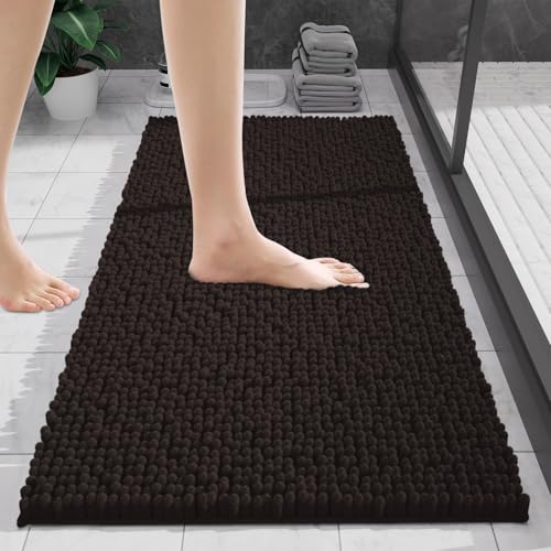 wyewye Chenille Bathroom Mat, Extra Soft Bathroom mat Non-slip,Super Absorbent Fluffy and Shaggy Bath Mats for Bath mat,Machine-Washable Quick Dry Bath Rug Foot Mat, Brown