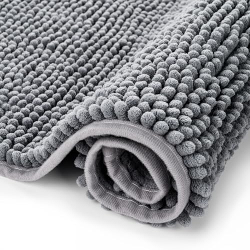 smiry Non Slip Chenille Bath Mat, Extra Soft Bathroom Mat, Super Absorbent Fluffy Bath Mats for Bathroom, Machine-Washable Quick Dry Bath Rug Foot Mat, 40 x 60 cm, Grey