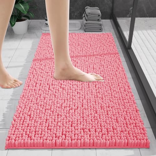 wyewye Chenille Bathroom Mat, Extra Soft Bathroom mat Non-slip,Super Absorbent Fluffy and Shaggy Bath Mats, Machine-Washable Quick Dry Bath Rug Foot Mat, Pink