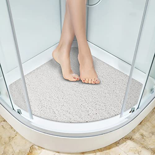 Corner Shower Mat, Non Slip Anti Mould Bath Mat 60 x 60 cm, Loofah Shower Mats for Inside Shower, Sector Bath Mats with Drain, Washable, Quick Dry Bath Mat for Bathroom Floor, Elderly (Grey)