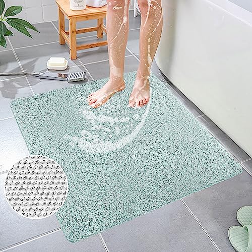 Non Slip Shower Mats 50x80CM, PVC Loofah Bath Mat for Inside Shower, Large Quick Dry Soft Bath Mat for Bathroom Floor, Shower Slip Mat for adults, Washable & Mould Resistant, Blue