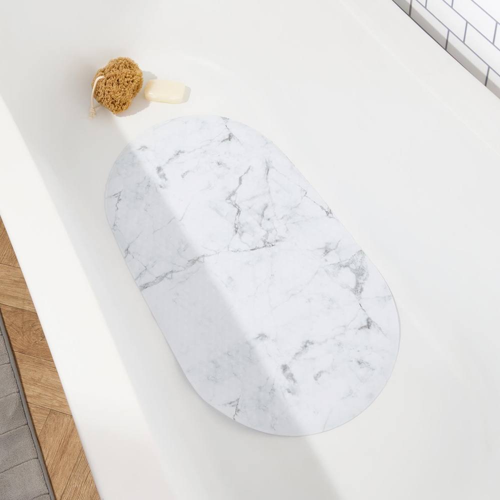 OHS Marble PVC Non Slip Quick Dry Bath Shower Mat in White
