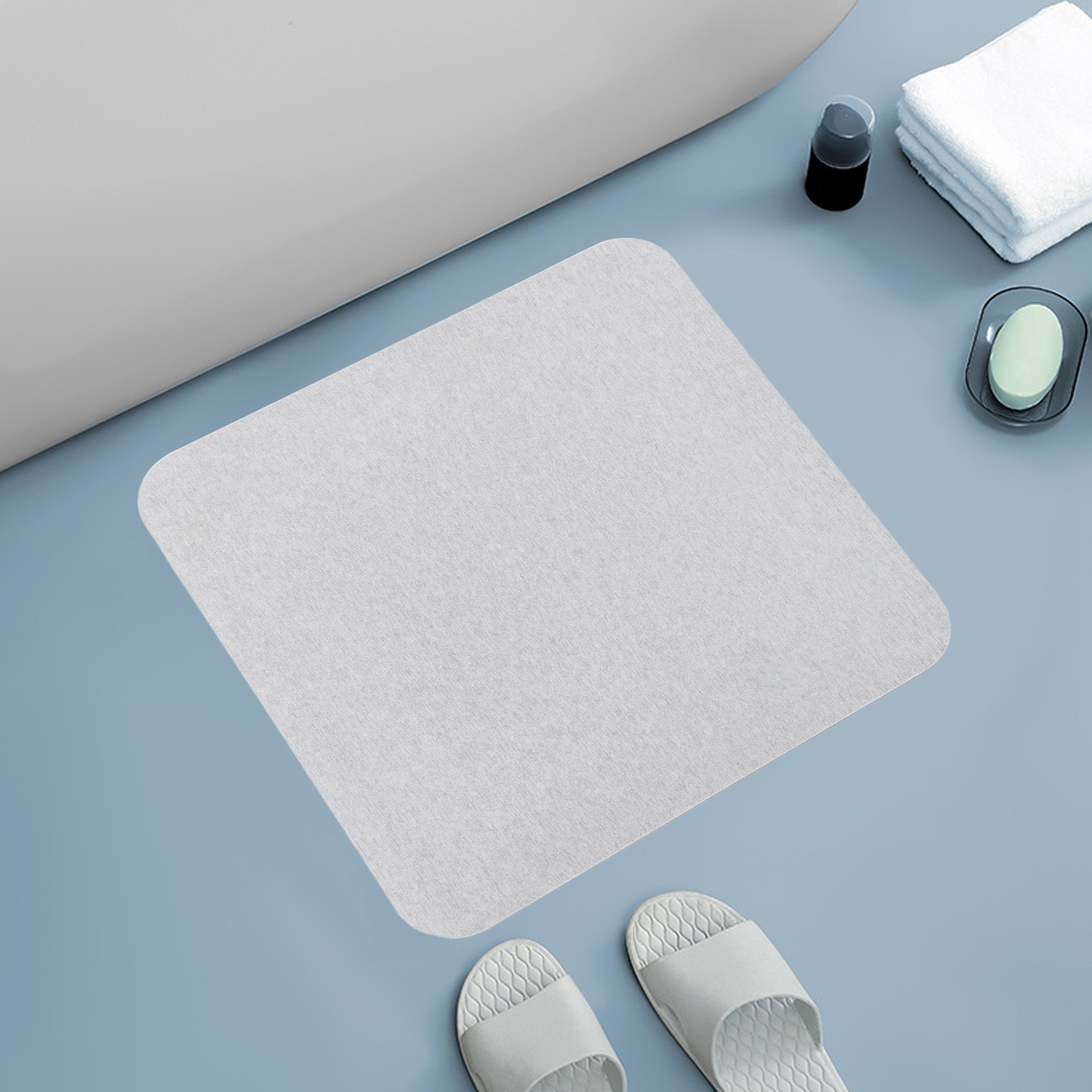 Luxshiny Diatomaceous Anti-slip Floor Mat Super Absorbent Bathroom Ground Pad Quick Dry Non-slip Bath Mat for Shower Design with Strong Water Absorption Grey