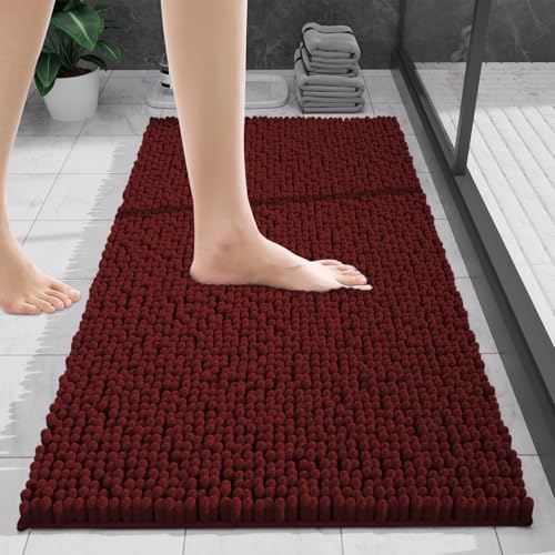 wyewye Chenille Bathroom Mat, Extra Soft Bathroom mat Non-slip,Super Absorbent Fluffy and Shaggy Bath Mats for Bath mat,Machine-Washable Quick Dry Bath Rug Foot Mat, Dull red