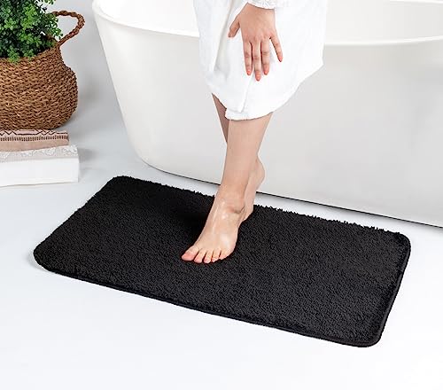 Livabliss Bathroom Mat - Washable Non Slip Bath Mats 50x80 cm, Absorbent Quick Dry Bath Mat - Easy Care Bathmat, Bathroom Rug for Outside Shower, Floor Shower Carpet, Black