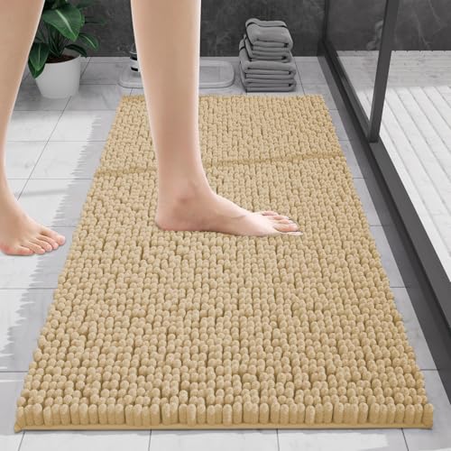 wyewye Chenille Bathroom Mat, Extra Soft Bathroom mat Non-slip,Super Absorbent Fluffy and Shaggy Bath Mats for Bath mat,Machine-Washable Quick Dry Bath Rug Foot Mat, Champagne