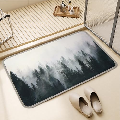 ORTIGIA Misty Forest Bathroom Rug Quick Dry Super Absorbent Bath Mat Doormat Diatomite Mud Floor Mat Non Slip Rubber Bath Floor Rugs Washable Shower Rug for in Front of Bathtub,Shower Room 16x24inch