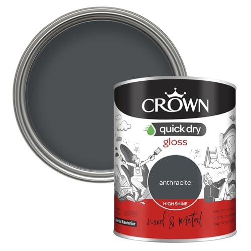 CROWN Anthracite - Quick Dry Gloss Paint - Wood & Metal - Non Yellowing - Dark Grey Paint - 750ml