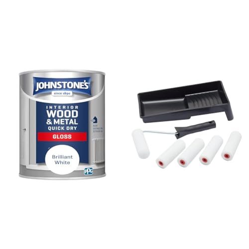 Johnstone's - Quick Dry Gloss - Brilliant White - Gloss Finish - Water Based & Fit For The Job 7 pc Foam Mini Paint Roller Set for Painting with Gloss & Satin
