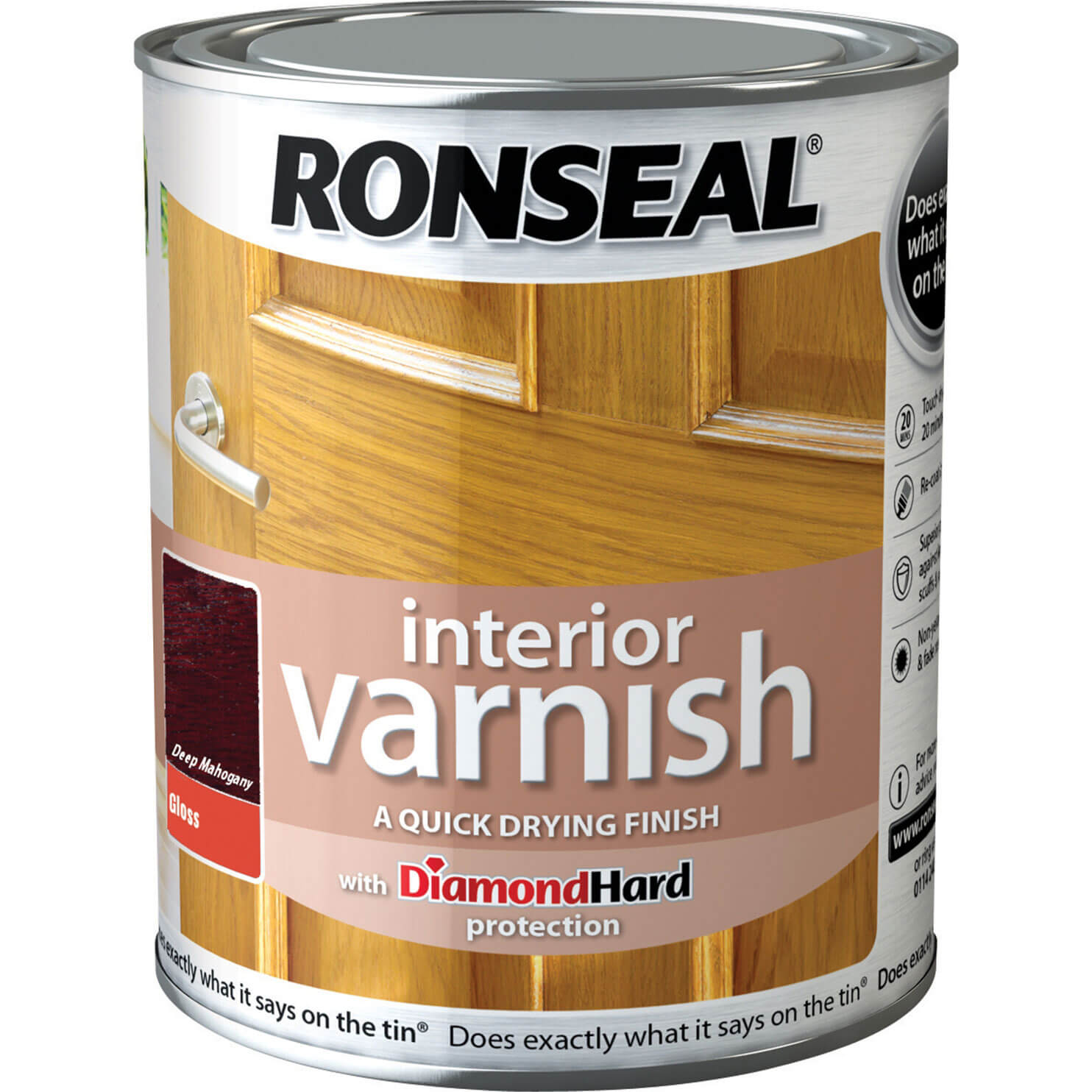 Ronseal RSLINGDM250 250ml Quick Dry Gloss Interior Varnish - Deep Mahogany