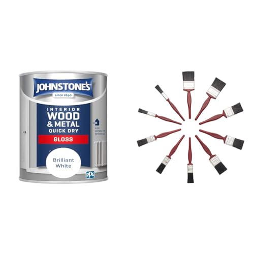 Johnstone's - Quick Dry Gloss - Brilliant White - Gloss Finish - Water Based & Fit For The Job 10 pc Mixed Sizes Paint Brush Set for a Smooth Finish with Emulsion, Gloss