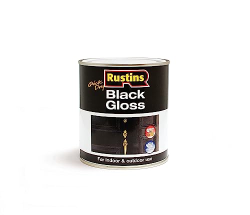RUSTINS Quick Dry Black Gloss Paint 500ml –Fast-Drying Water-Based Caoting for Wood and Metal; Durable Hard-Wearing Finish with Smooth Gloss Shine; Low Odour Sustainable Paint for Home and Trade Use