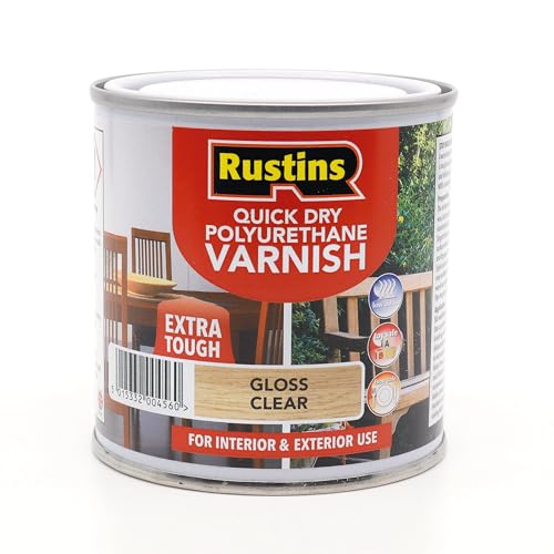 Rustins Quick Dry Varnish Clear Gloss 250ml-Fast-Drying Water-Based Wood Varnish; Durable Non-Yellowing Finish in Gloss, Satin or Matt for Indoor Use