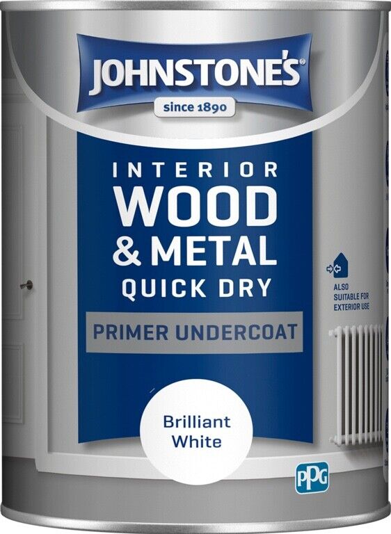 Johnstone's Wood Metal Interior Exterior Quick Dry Primer Undercoat 1.25L WHITE