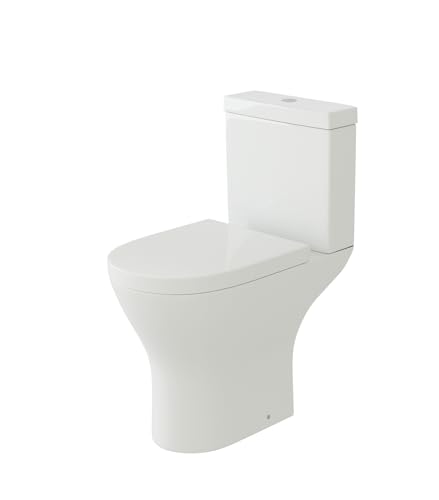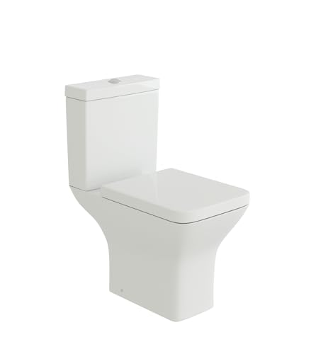 iBathUK Rimini Close Coupled Toilet, Ceramic Toilet Pan with Chrome Dual Flush Cistern, Soft Close, Quick Release Toilet Seat for Bathroom-White Gloss, Square Shape