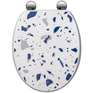 Croydex Flexi Fix™ Terrazzo Moulded Wood Quick Release Toilet Seat - White Blue