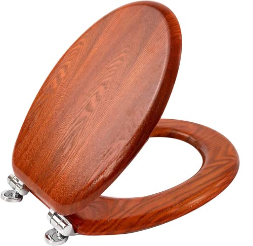 Angel Shield Antibacterial Wooden Soft Close Toilet Seat with Quick Release Adjustable Hinges Toilet Seat Easy Clean and Assembly for Bathroom 45 x 37 x 5.6 cm (Solid Oak)