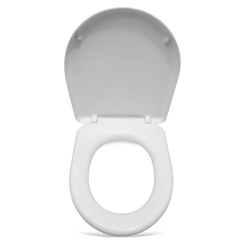 SA Products Quick Release Toilet Seat - with Soft Close & Quick Release Hinges for Easy Cleaning - Universal Bathroom Bowl Seating with Thermoset Lid, ABS Cylinder, Fixings - 44.1x36.5x5cm, White