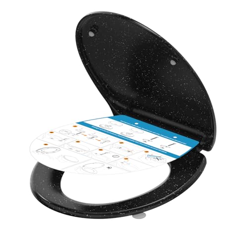 YEAUPE PRO Toilet Lid with Soft-Close Mechanism, Toilet Seat, UV-Resistant, Toilet Lid with Quick Release Function, Toilet Seat, 150 kg Load Capacity, Urea Duroplast, Black Marble, 44.6 x 37.2 x 5.2