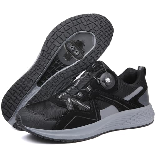 TvzsiY Men's Mountain Bike Cycling Shoes Rotary Quick-lace System Compatible Installation SPD Cleats, Anti-Collision Design to Protect Toes,Black,10.5 UK
