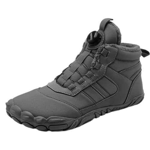 Pangolin Men's Women's Winter Walking Snow Boots -Lightweight Water-Resistant Warm Fur-Lined Trainers with Quick-Lace Dial & Anti-Slip Rubber Sole for Outdoor Hiking Grey 10.5UK