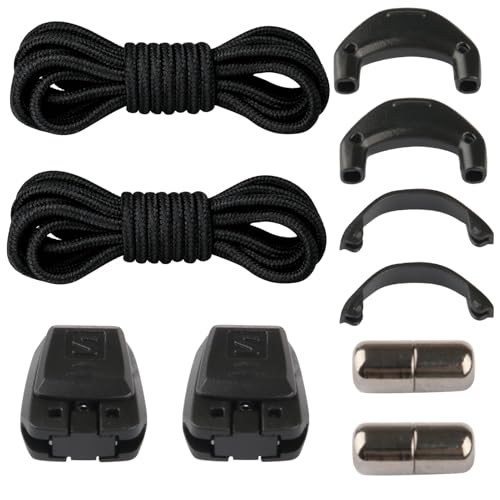 Shoelace Kit for Salomon Quicklace System, No Tie Round Replacement Shoe Laces Strings for Salomon Speedcross Running Hiking Ski Shoes with Quick Release Lock for Trail Running Boots (Black, 140cm)
