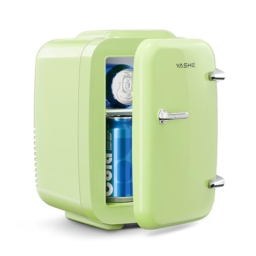 YASHE Mini Fridge, 4 Liter/6 Cans Portable Cooler and Warmer, AC/DC Power Small Fridge, Quiet Desk Skincare Fridge for Beauty Drinks Medicine, Mini Fridge for Bedrooms Office Dorm Car Travel, Green