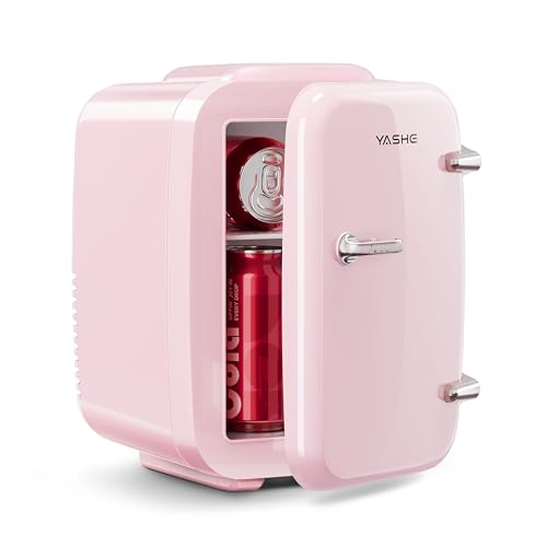 YASHE Mini Fridge, 4 Liter/6 Cans Portable Cooler and Warmer, AC/DC Power Small Fridge, Quiet Desk Skincare Fridge for Beauty Drinks Medicine, Mini Fridge for Bedrooms Office Dorm Car Travel, Pink