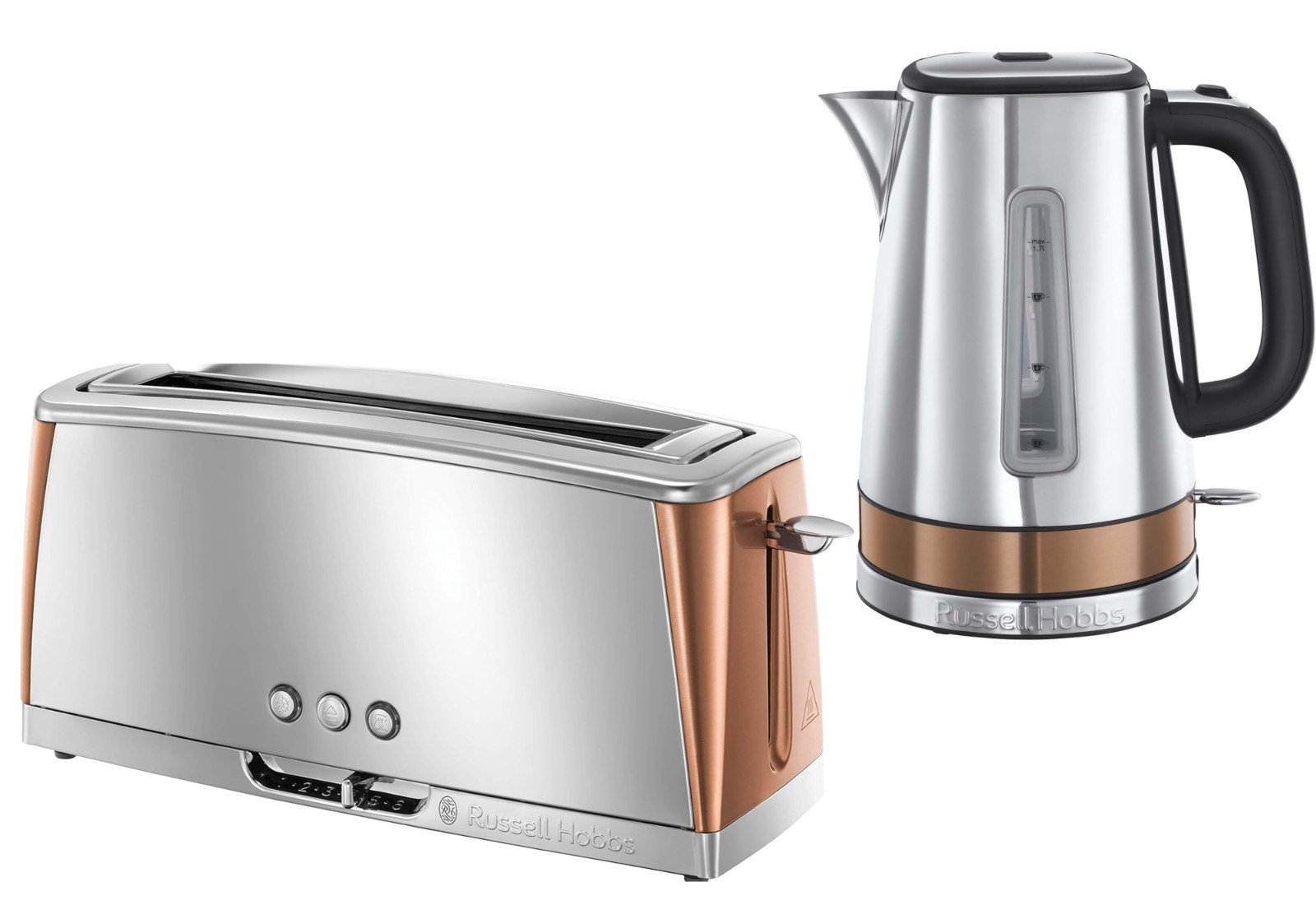 Russell Hobbs Luna Kettle & 2 Slice Toaster Set in Copper/Steel Fast/Quiet Boil