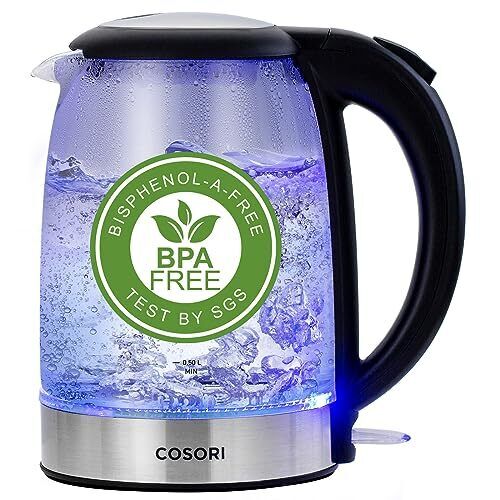 COSORI Electric Kettle Glass, Fast Boil Quiet, 3000W 1.5L with Blue LED,