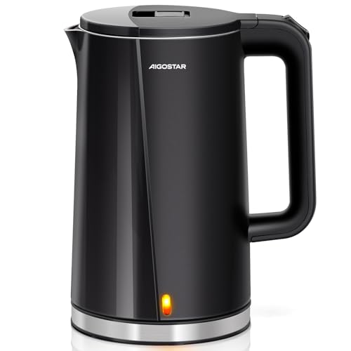 Aigostar Electric Kettle, Quiet Fast Boil Kettles Cordless, Double-Walled Anti-Scald Tea Kettle Black, Stainless Steel Interior, 2200W - Aubrey