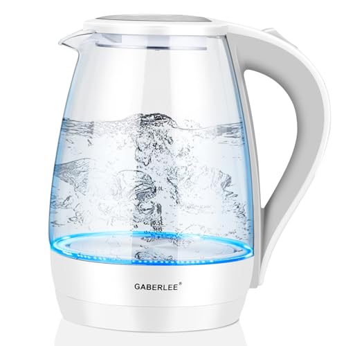 GABERLEE Electric Kettle, 1.7L, Fast Boil Quiet Glass Kettle with Blue LED, Auto Shut-Off and Boil-Dry Protection, Stainless Steel Inner, BPA-Free, 2200W, White