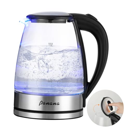 WatiHomic Electric Kettle, 1.8L Glass Kettle with Blue LED, 1800W Cordless Kettles, Fast Boil Quiet Kettles, Boil-Dry Protection, Auto Shut-Off, Easy Clean, BPA Free, Stainless Steel Water Tea Kettle